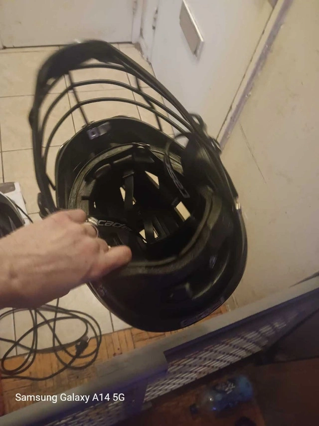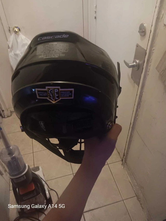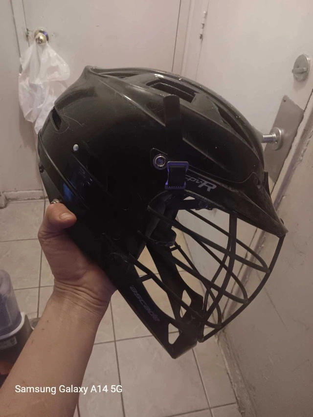 This black helmet offers robust head protection for motorsports. I'm unsure of the exact model, so I encourage you to come see it yourself. It's in excellent condition. If the ad is up, it's available! 647-203-0411