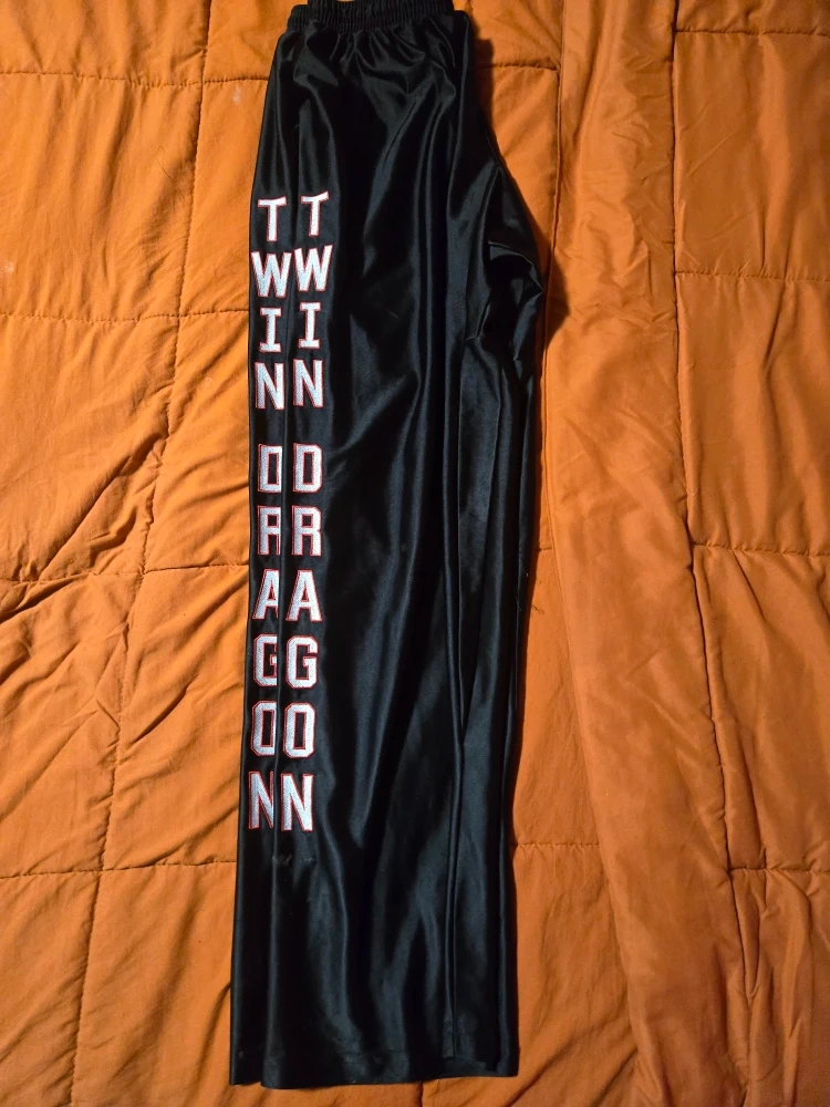 Selling a pair of black track pants with the words "Twin Dragon" down the sides! They're in great condition and ready for a new home
