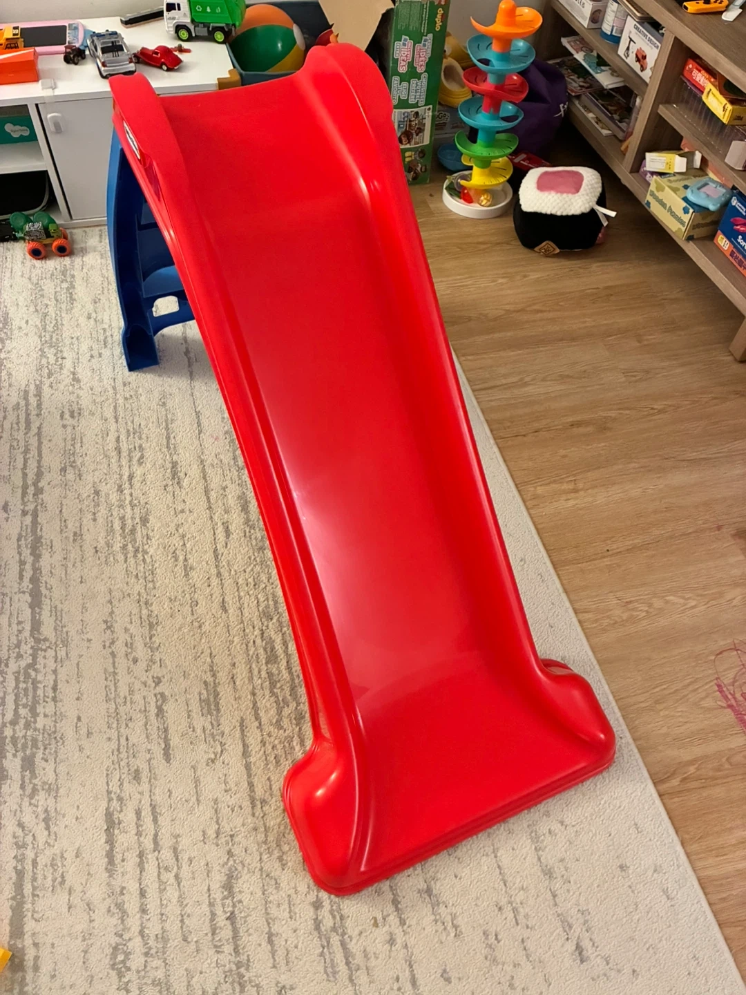Selling a gently used Little Tikes First Slide! It's in great shape and ready for a new home. Perfect for toddlers and young children, it's a classic and safe way to introduce them to the fun of sliding. The bright red and blue colours are super appealing too
