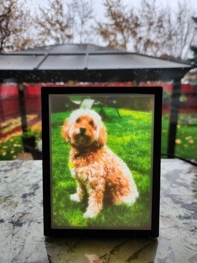 10Custom 3D Printed Lithophane Light Box Turn any of your photos into a glowing 3D-printed light box! When the LED turns on, your image appears in amazing detail. Simply powered by a USB-C charger. Includes: • Custom lithophane from your photo • LED backlight • Custom colour frame Perfect for: Gifts, memorials, baby photos, couples, pets, décor. Available now for $50 each. Local pickup (Brampton) available.