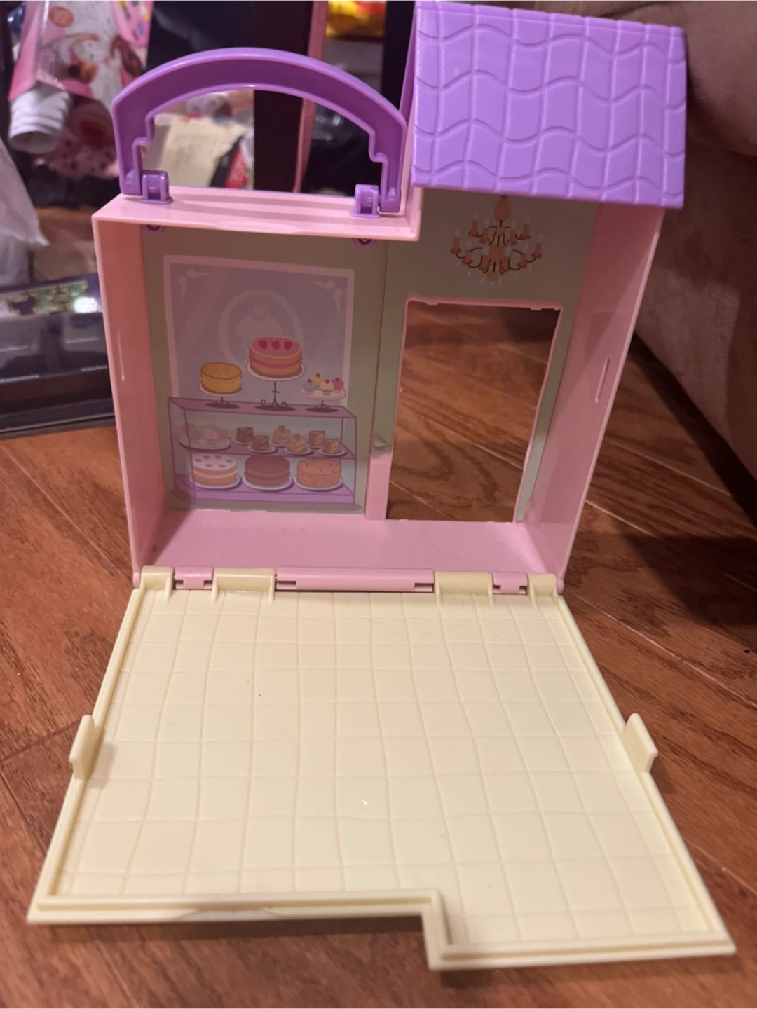 Selling a cute toy bakery playset! It's pink and purple and ready for imaginative play. Perfect for little bakers!