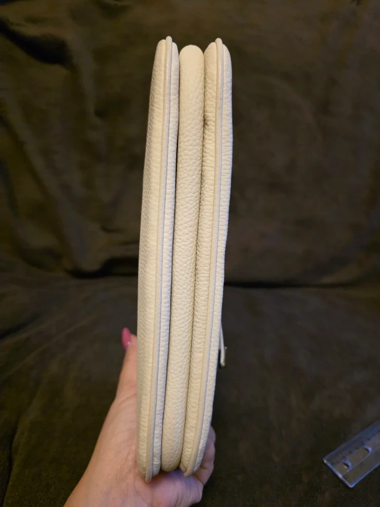 Please review photos closely for the condition of the bag. There are a few tiny faint scuffs and some faint discolouration on the back of the bag (last two photos). However, the front of the bag and its corners are in almost new condition.