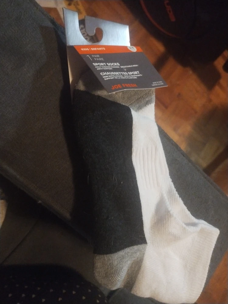 Selling a brand new pair of Joe Fresh sport socks for kids, size 3-6! These socks feature half cushion padding and breathable mesh, making them perfect for active kids