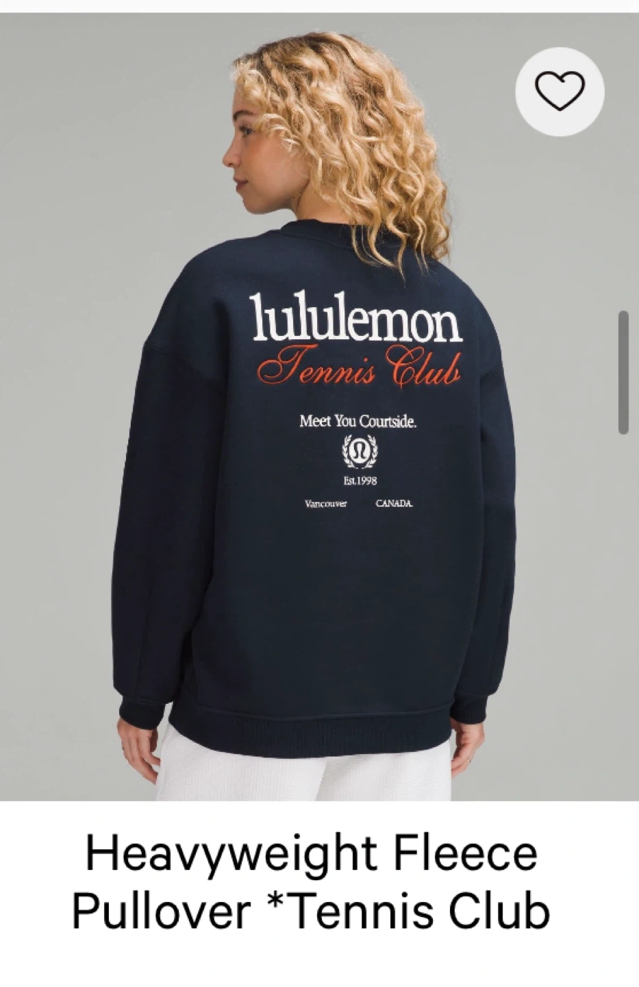 Selling a Lululemon Tennis Club Heavyweight Fleece Pullover. It's a super comfy pullover with the Lululemon logo and 'Tennis Club' on the back. Perfect for staying cozy!