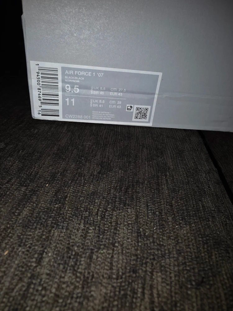 Selling a pair of black Nike Air Force 1 Low sneakers. They're in good condition and ready for a new home!