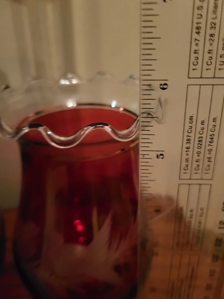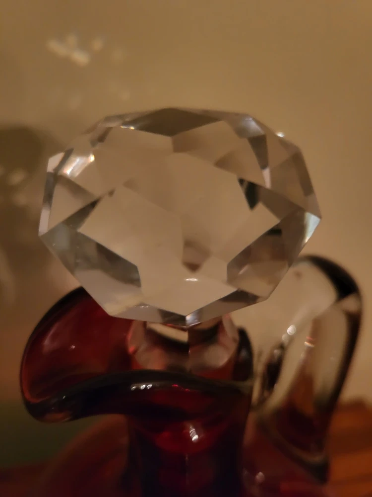 Selling a beautiful vintage decanter in a rich ruby red glass. It comes with a clear glass stopper and is in great condition. It's a lovely piece to add a touch of elegance to your home!