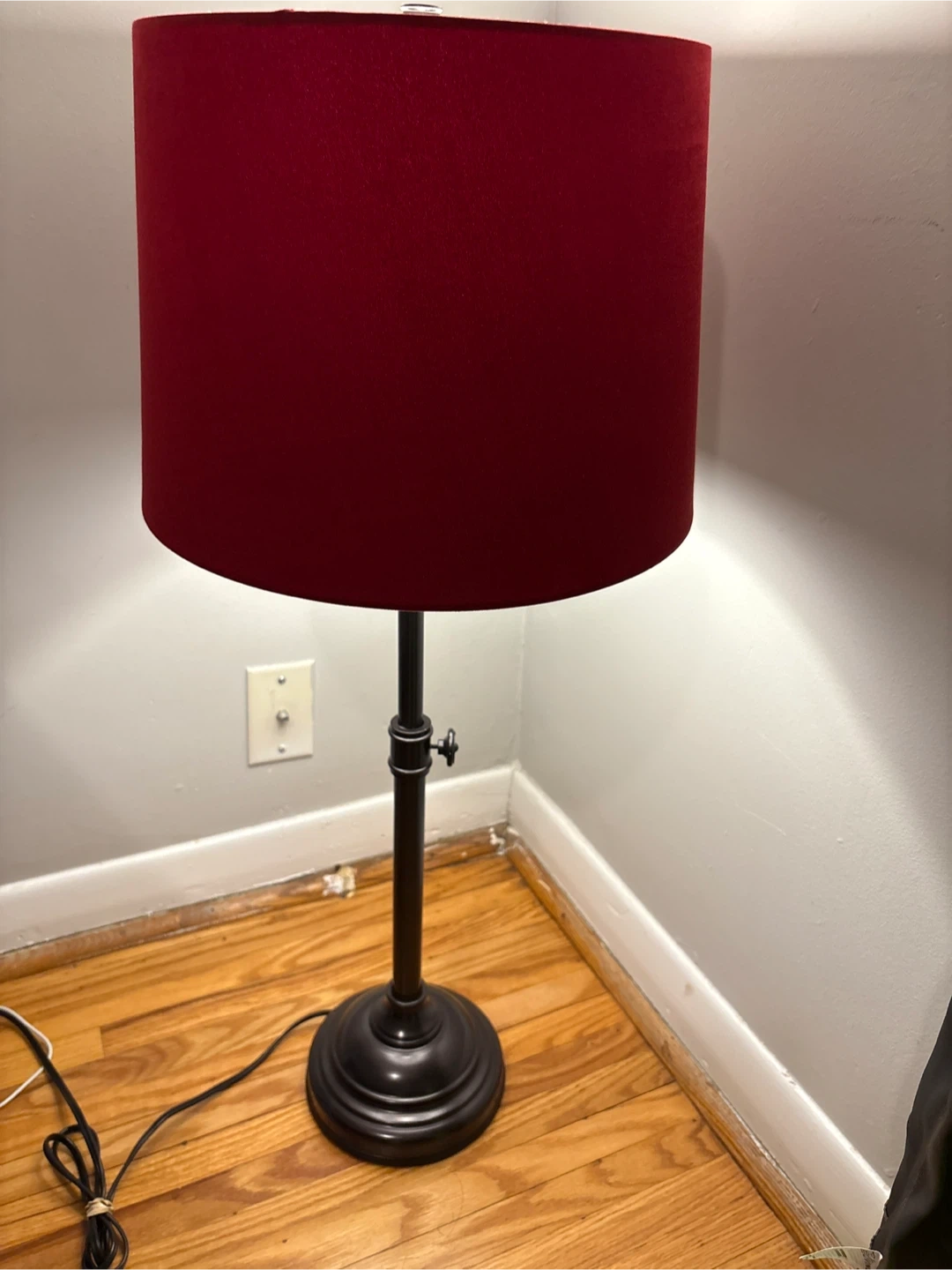 A collection of home decor and fitness items. Includes a red lamp, a jewellery box, and a pink exercise board. All in good condition and ready for a new home!