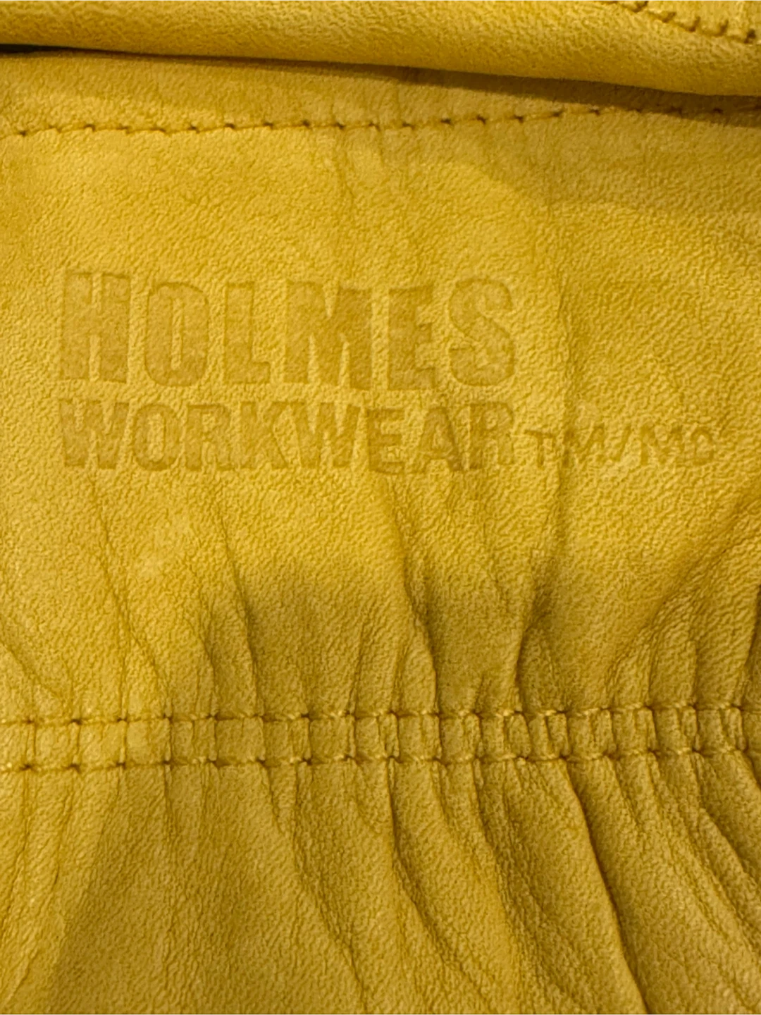 82Selling a pair of Holmes Workwear leather gloves in size large! These gloves are yellow and made of leather. They're in good condition and ready for a new home