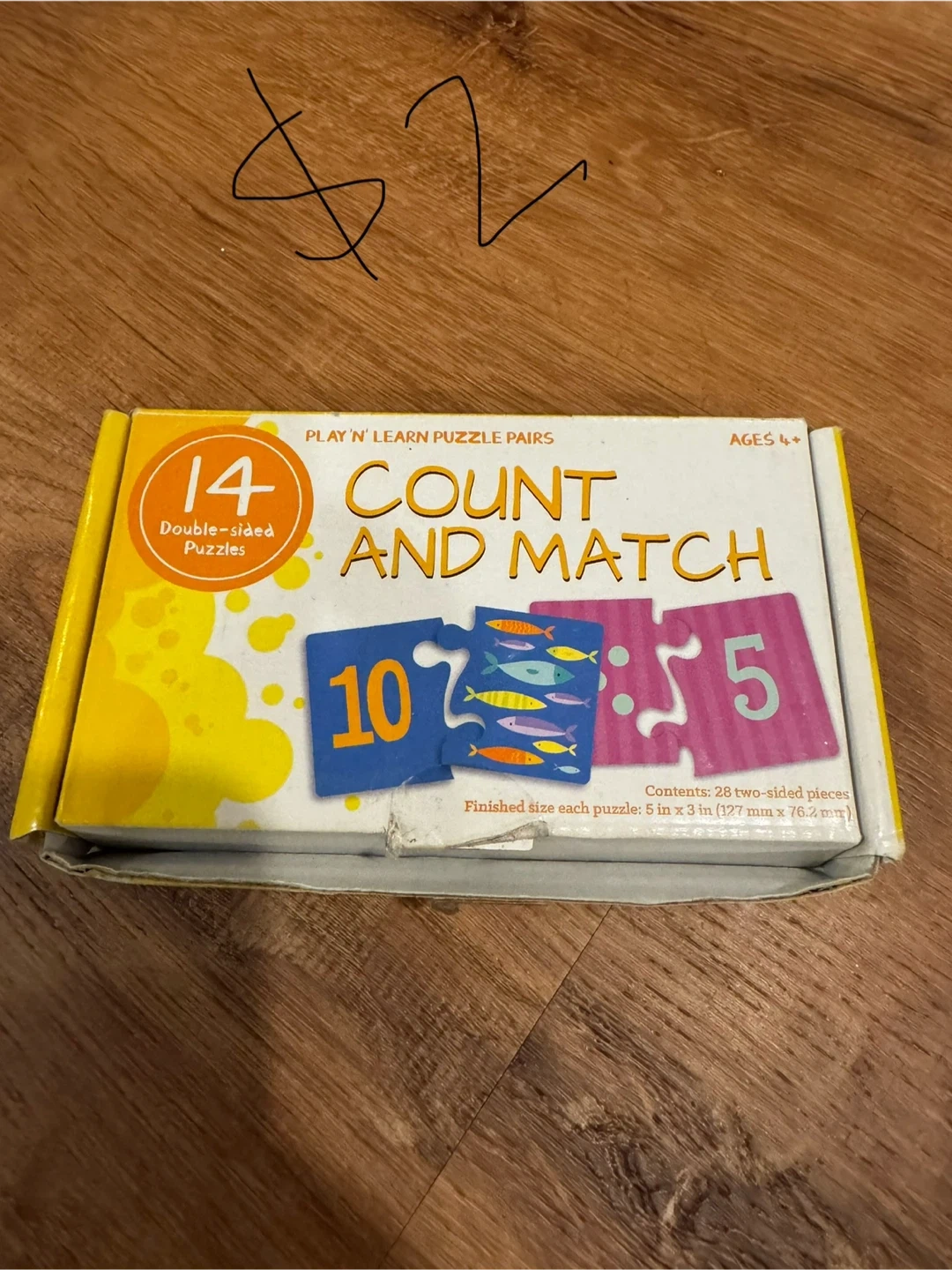 Selling a bundle of fun and educational items for kids! It includes a Play 'N Learn puzzle pairs "Count and Match" puzzle for ages 4+ with 14 double-sided puzzles. Also included is the popular children's book "Little Blue Truck" by Alice Schertle, and two Paw Patrol books.