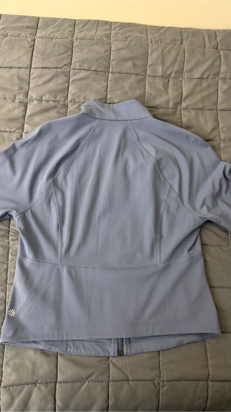 Selling a gently used Athleta jacket in size L! It's a lovely blue colour and in great condition. Perfect for layering or wearing on its own. The price is negotiable and pick up is preferred 🫶🏾