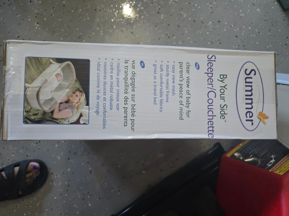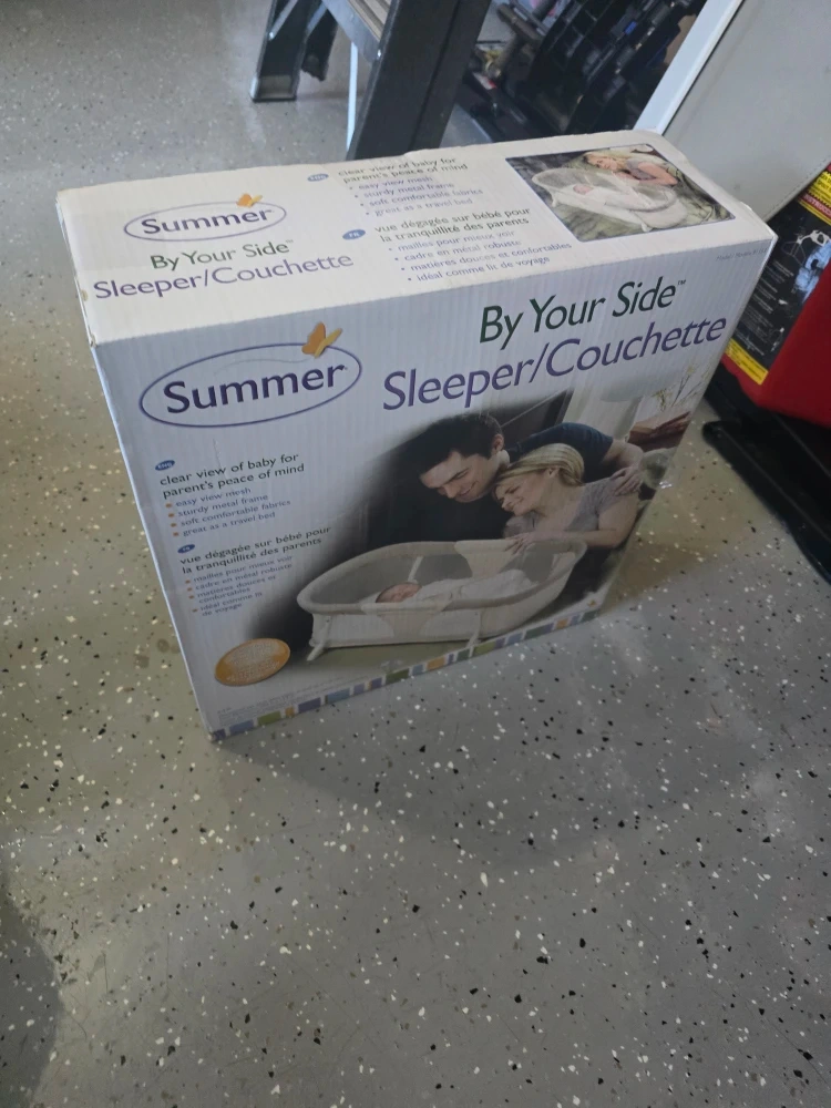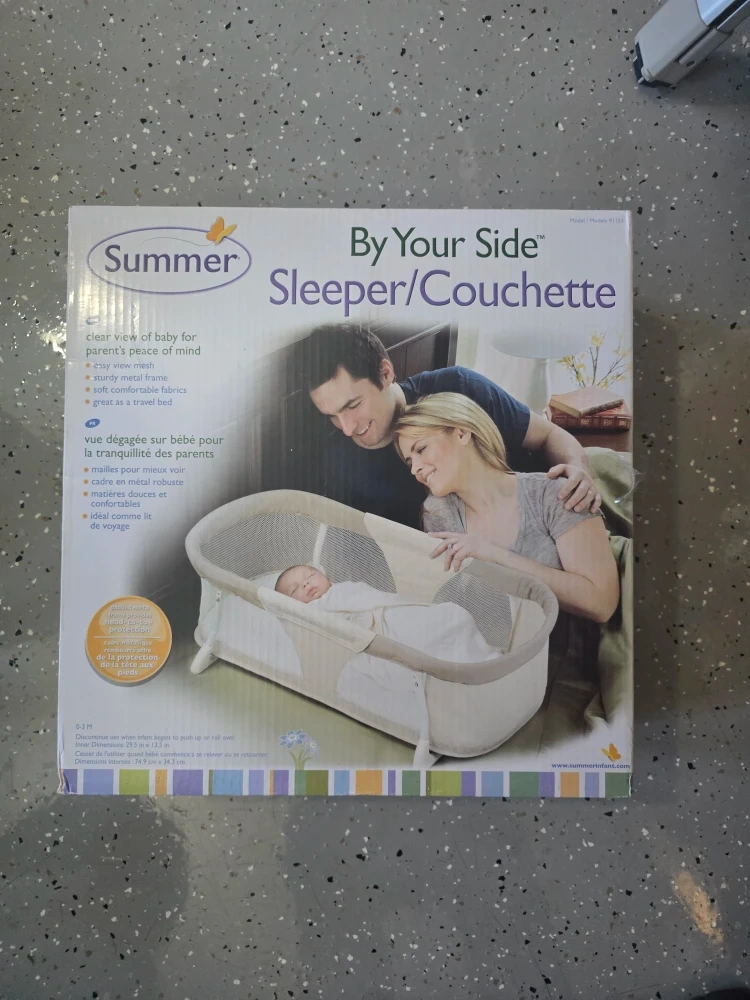 Selling a brand new Summer By Your Side Sleeper/Couchette, still in its original packaging! It features an easy view mesh, sturdy metal frame, and soft comfortable fabrics. It's great as a travel bed and provides a clear view of baby for parent's peace of mind