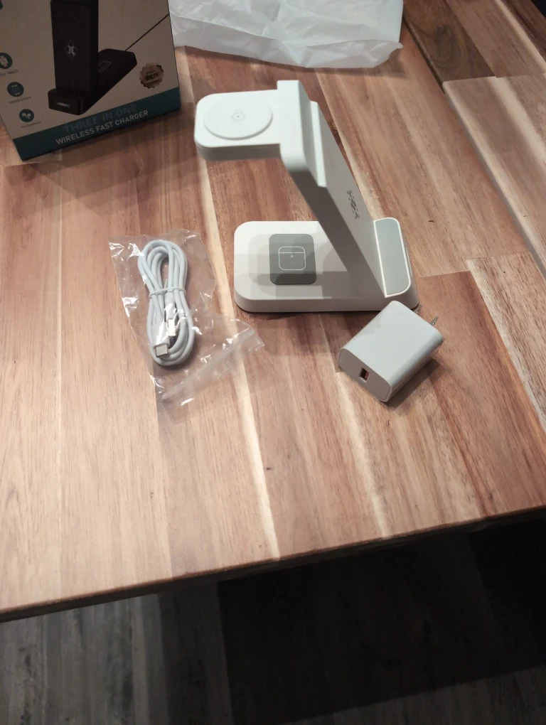 Selling a three-in-one wireless fast charger! It's the B-20 model and can charge your watch, mobile phone, and earphones. It comes with the box and all components, including the charger itself.