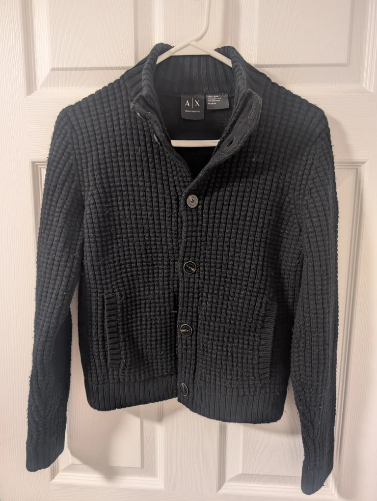 Selling a gently used Armani Exchange knit cardigan in black. It's in great condition and extremely warm. Size XS in women's.