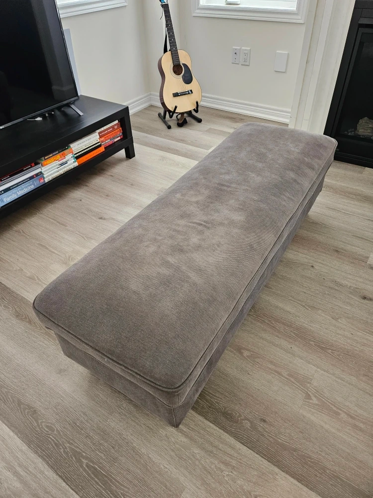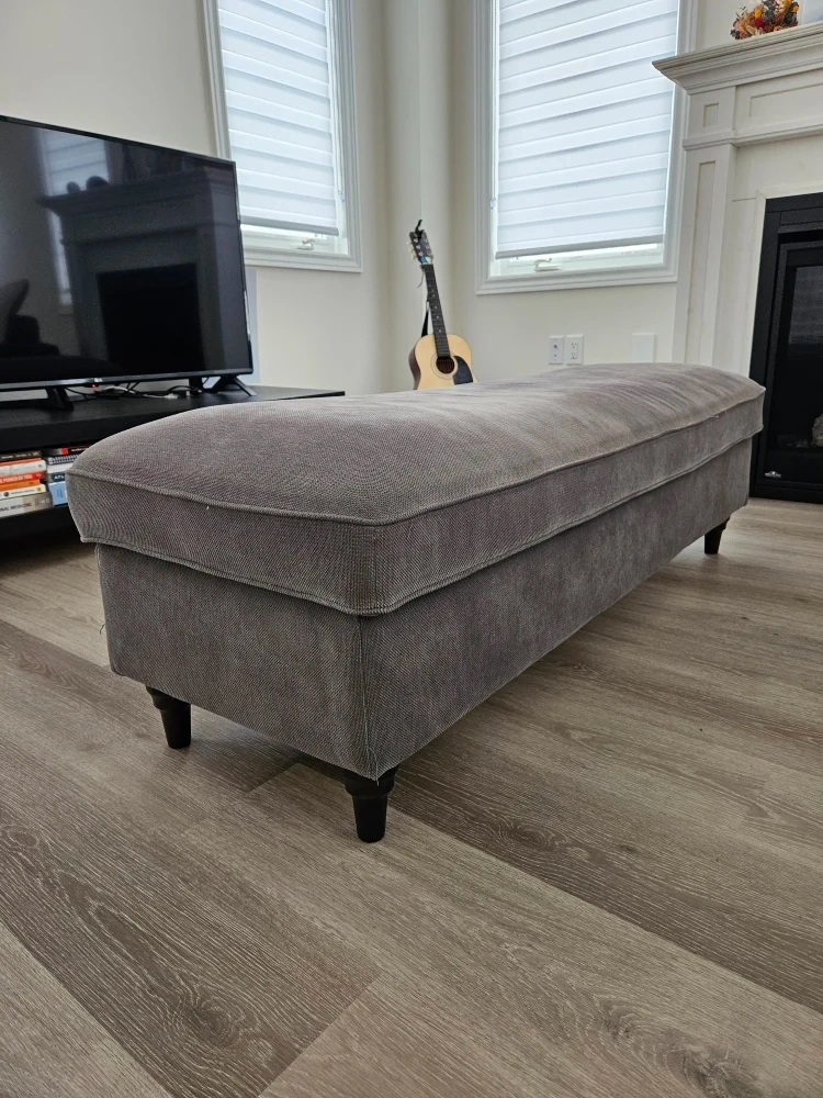 Selling a handy grey ottoman bench that also doubles as storage! It's in great shape and perfect for adding extra seating and keeping things tidy. The ottoman has a lift-up top, revealing a spacious storage compartment inside