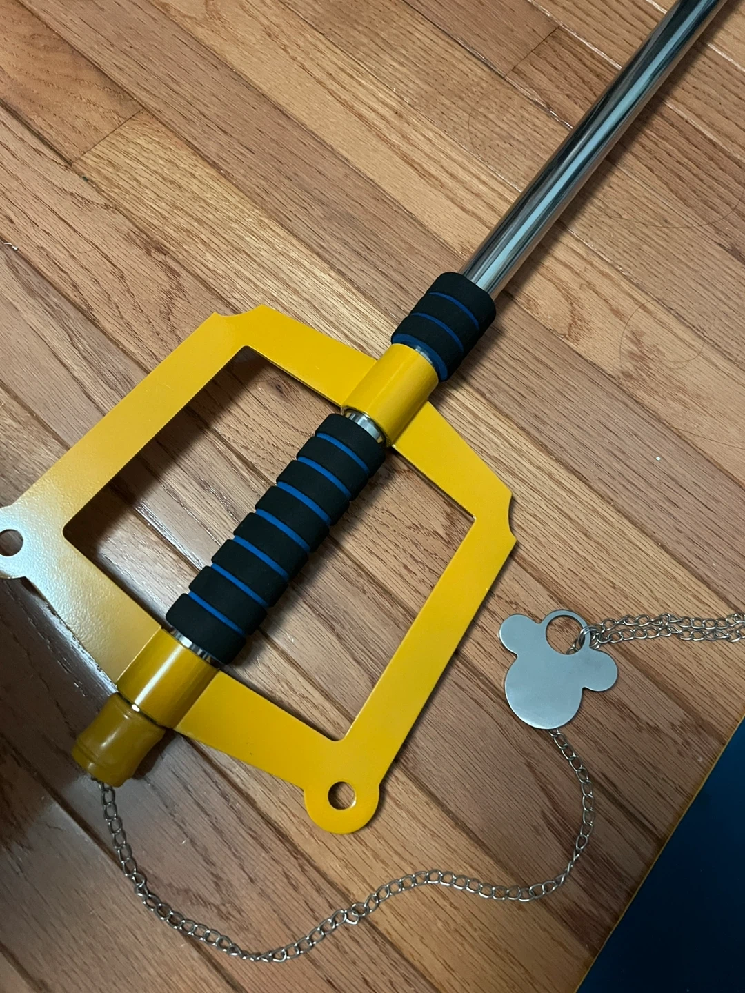 Selling a Kingdom Hearts Keyblade prop replica! It's in great shape and perfect for cosplay or display- never used. Features a silver metal shaft, yellow guard, and a key-shaped blade. A cool piece for any Kingdom Hearts fan!