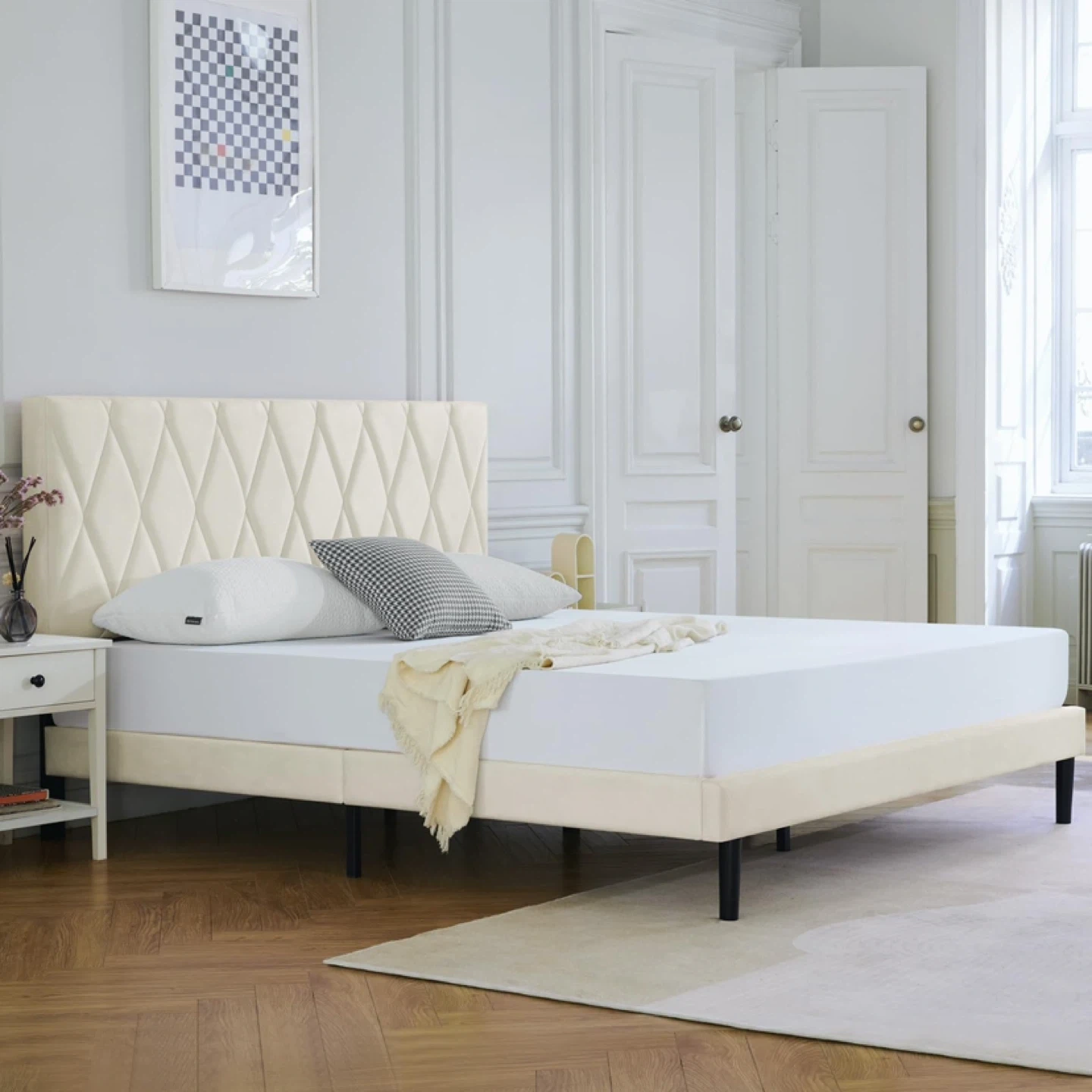 Queen IYEE NATURE Premium Upholstered Platform BedFrame