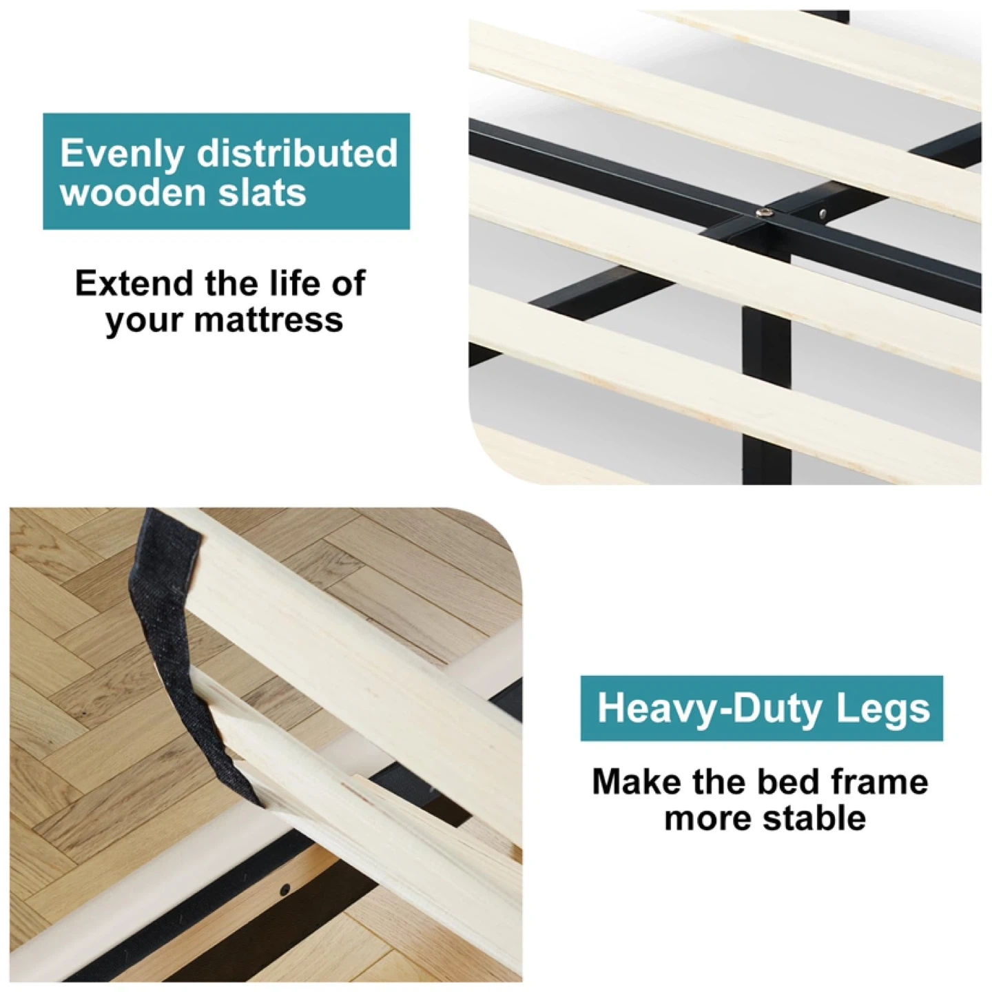 【Strong load-bearing, comfortable use experience]】The foot and bed of this bed frame are made of high-hardness metal, with a maximum load-bearing capacity of 900 pounds. The arched design of the wood makes the mattress and the bed frame fit better. Reliable and durable, closely spaced wooden slats also provide you with reliable support.