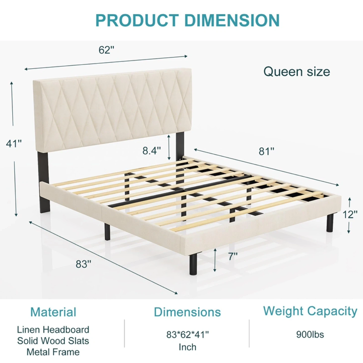 【High-quality material, durable】The upholstered part is wrapped with high-quality eco-friendly linen fabric, the foam padding also adds comfort to the bed frame, and the durable wooden strips extend the life of your mattress.