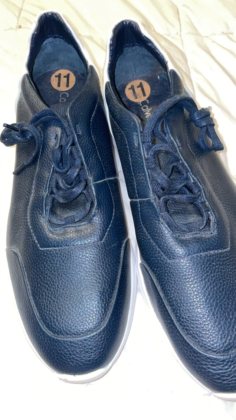 Selling a pair of Calvin Klein sneakers in size 11. They're a stylish navy blue with white soles, perfect for everyday wear!
