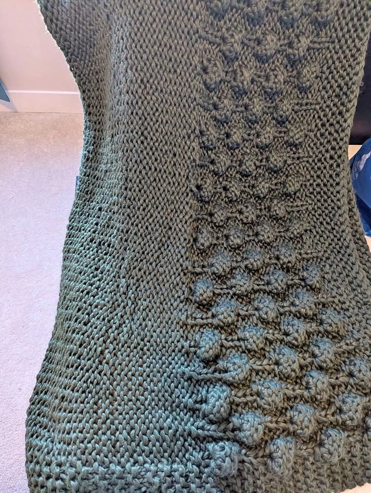 New, never used. I threw away the packaging before I changed my mind since I was moving. After we set everything up I realized it didn't go with my decor. Beautiful chunky knit pattern. Retails for around $120+tax. Asking for $50.