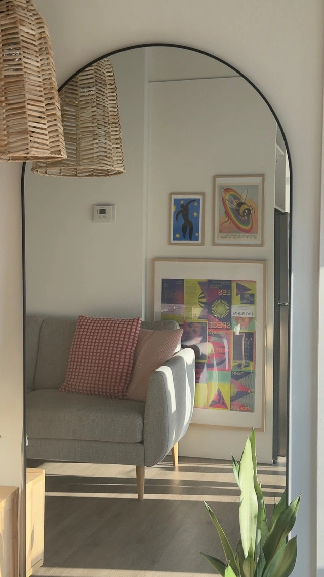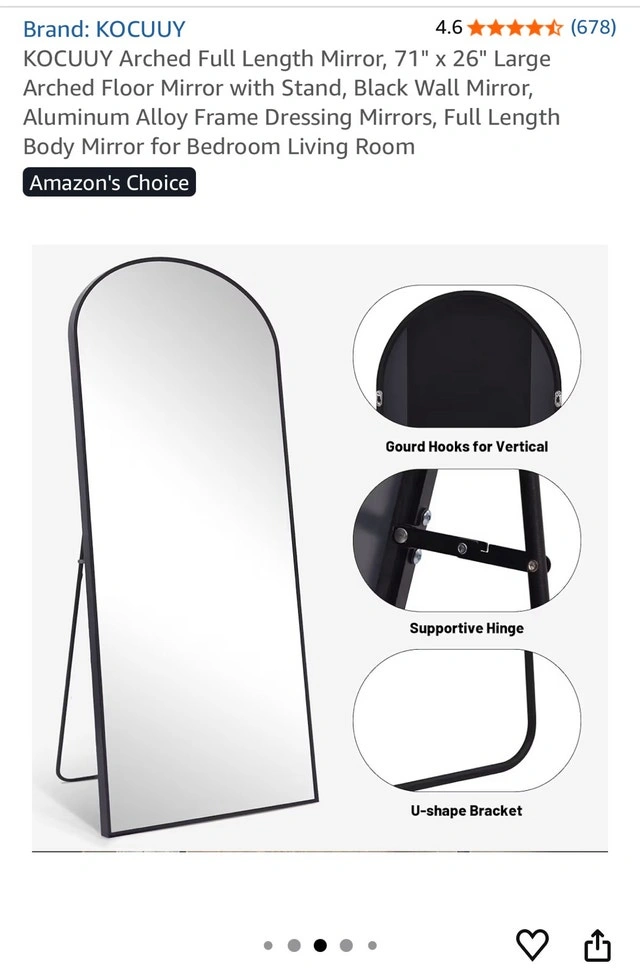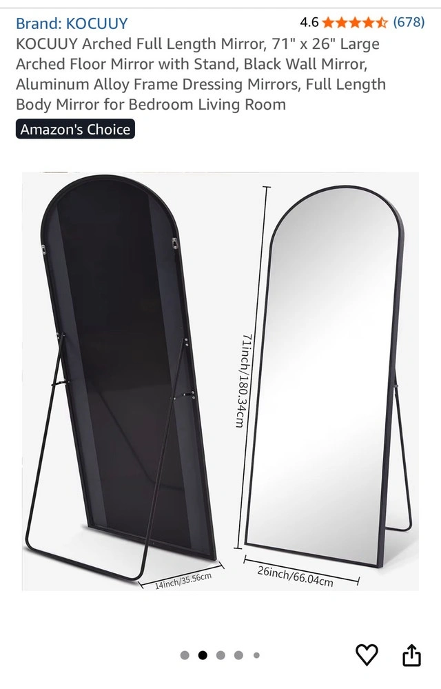 Elegant full-length arched mirror with black aluminum alloy frame, in perfect condition. Currently priced at $229.99 + taxes on Amazon (71” x 26”, black version). Selling for only $100 – no tax.