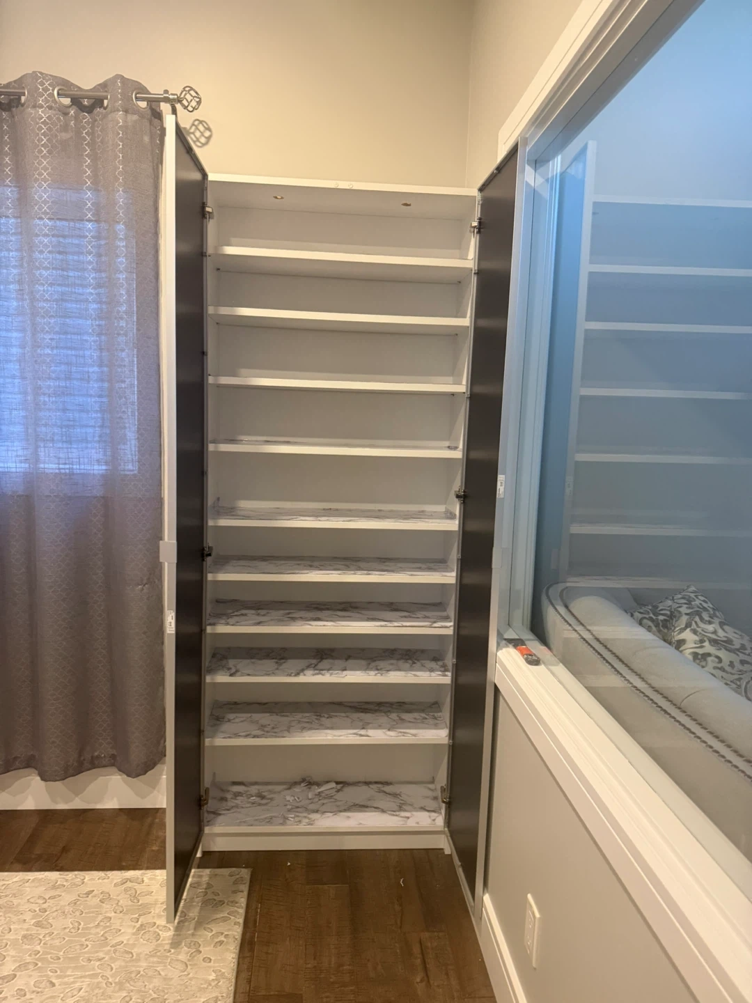 Selling an IKEA PAX wardrobe with white glass doors! It's in great condition and offers lots of storage space with adjustable shelves. Perfect for organizing your clothes and keeping your room tidy. Send me a message if you're interested!