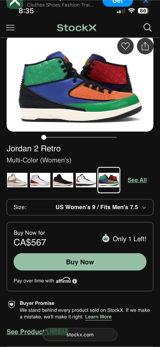 Jordan 2 Retro Multi-Color (unisex) US 9 women US 7.5 men