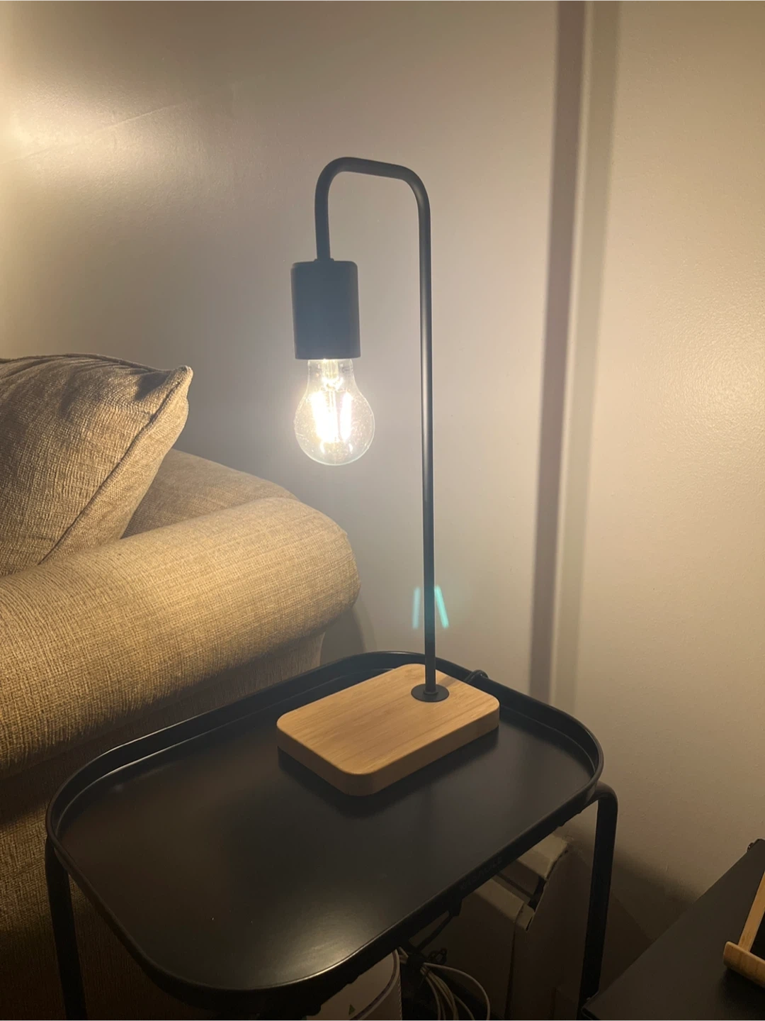 Selling 2 modern table lamp with a sleek black finish and a wooden base. It's in great condition and adds a stylish touch to any room. Perfect for a bedside table or desk!