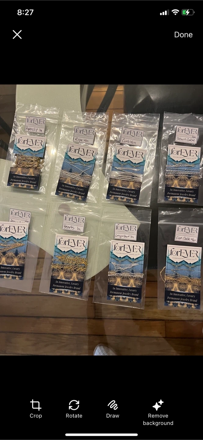 Selling a Forever Linked Standard Starter Kit! It includes 8 meters of best-selling chain styles, with 4 meters/styles of gold-filled chain and 50 jump rings, plus 4 meters/styles of .925 sterling silver chain and 50 jump rings. Also included are a safety leather patch, grounded pliers, flush cutters, and chain nose pliers. Great for anyone getting started with permanent jewelry!