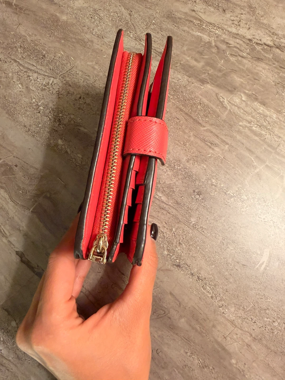 A lovely coral Kate Spade wallet. It's in great condition and has lots of space for cards and cash!