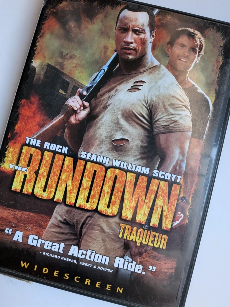 Selling The Rundown DVD starring The Rock and Seann William Scott! It's a great action-adventure movie with special features like deleted scenes and behind-the-scenes looks at the special effects