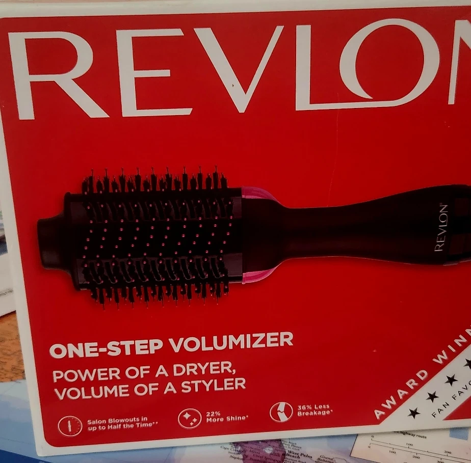 Selling a Revlon One-Step Salon Hair Dryer and Volumizer! It combines the power of a dryer with the volume of a styler. The oval design is great for extra lift, smooth volume, and curled ends. It features tangle-free bristles and multiple heat settings. The box is included!
