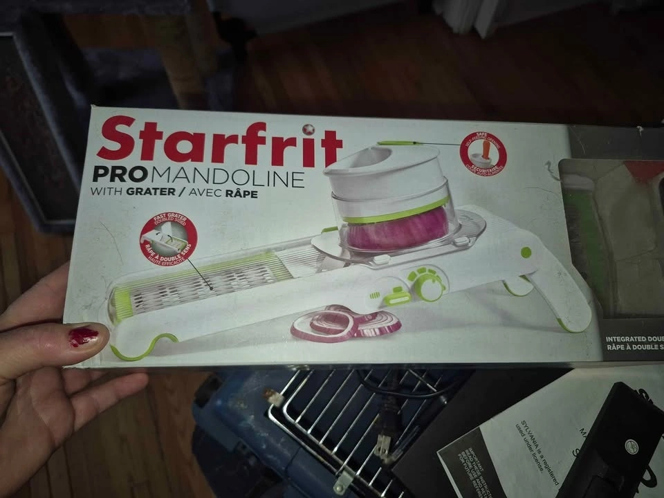 Buy & SellStarfrit Pro MandolineStarfrit Pro Mandoline$15Brand new Starfrit Pro Mandoline sells for $30 can be yours for $15 Pick up in Alliston near ZehrsWHERE TO MEETCheck LocationView MapSELLERLauraInnisfil100 reviews0 chats·0 favorites·2 views