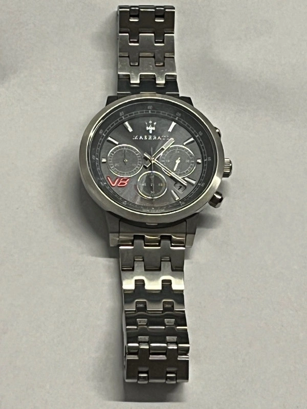 Selling a Maserati Granturismo Men's Chronograph Watch R8873134003. It's in good condition, some light scratches are present on the band. It doesn't come with any accessories. Details Model: R8873134003 Stainless Steel Case and Bracelet Mineral Crystal Solar Powered Fixed Bezel Screw-type Crown Buckle Closure Round, Grey Dial Case Dimensions: 44mm Diameter, 13mm Thickness Water resistant: 100 m (330 ft.)