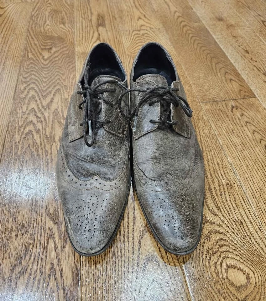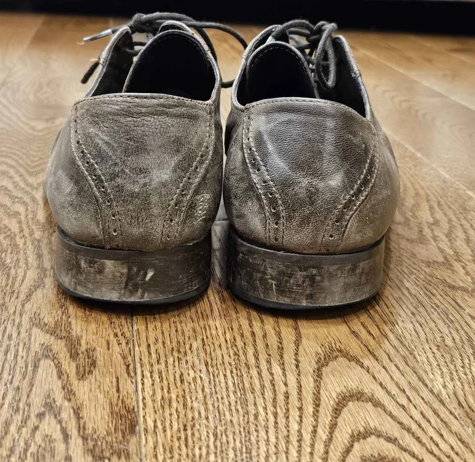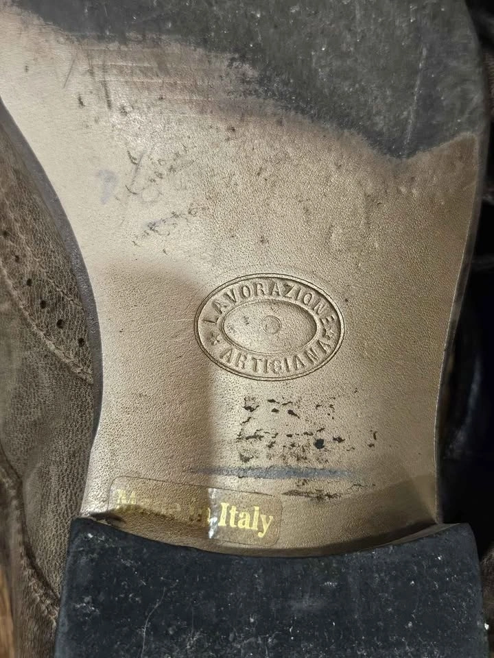 Step out in style with these vintage Lavorazione Artigiana leather dress shoes, size 9. These unique brogues feature intricate detailing and a distinctive weathered look, perfect for adding a touch of vintage charm to any outfit. They've seen a few adventures, but they're still ready to turn heads.