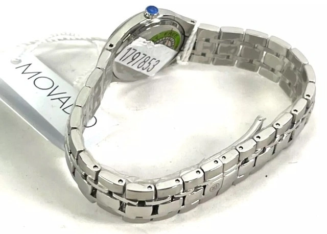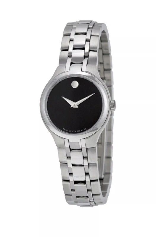 Selling a Movado Womens Museum Black Dial Stainless Steel Quartz Watch - 0606368. It's brand new and comes in the case with tags. NOTE: Case shows wear, dents, scratches Details Model Number 606368 Part Number 606368 Item Shape round Dial Window Material Type synthetic-sapphire Display Type analog Clasp Type deployment-clasp Case material stainless-steel Case diameter 26 millimeters Case Thickness 6 millimeters Band Material stainless-steel Band length womens-standard Band width 14 millimeters Band Colour silver Dial colour black Bezel material stainless-steel Bezel Function stationary Item weight 454 grams Movement swiss-quartz Water resistant depth 30 meters