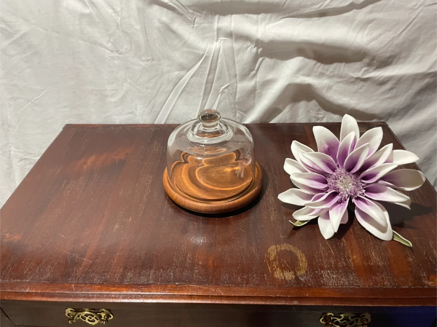 Selling a cute glass cloche with a wooden base! It's in great condition and would be perfect for displaying small items or adding a touch of elegance to your home decor