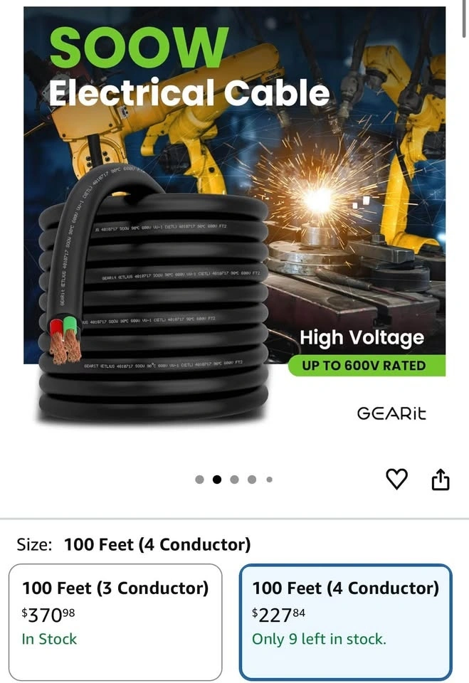 GEARit 10/4 10 AWG Portable Power Cable (100 Feet - 4 Conductor) SOOW 600V 10 Gauge Electric Wire for Motor Leads, Portable Lights, Battery Chargers, Stage Lights and Machinery -100ft Electrical Cord