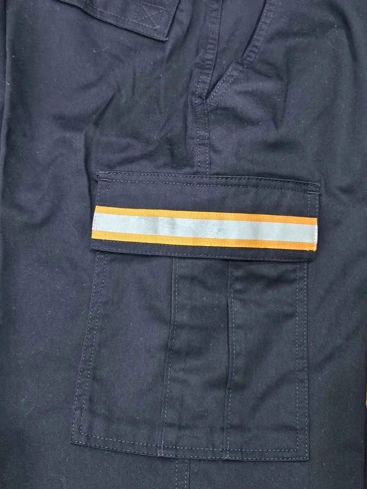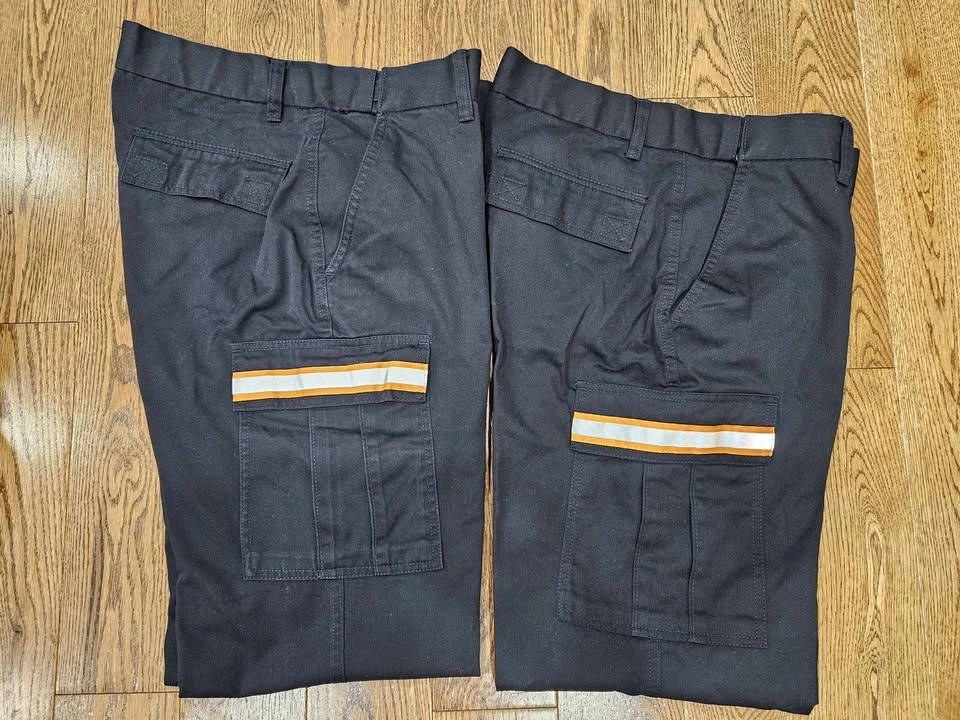 Get ready to tackle any job with these durable Trium Group blue work pants. These pants feature reflective stripes for added visibility. The pants are in good condition (1 gently used, other one never used), ready for work!