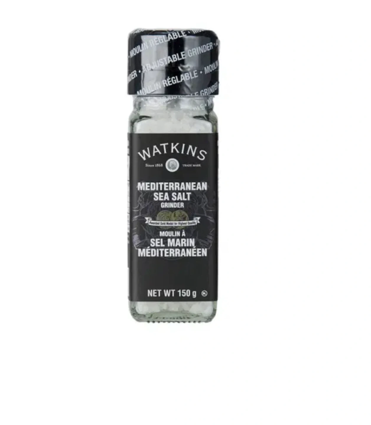 Selling a Watkins Mediterranean Sea Salt Grinder. It has a net weight of 150 g and features an adjustable grinder. Perfect for adding a touch of flavour to your meals!