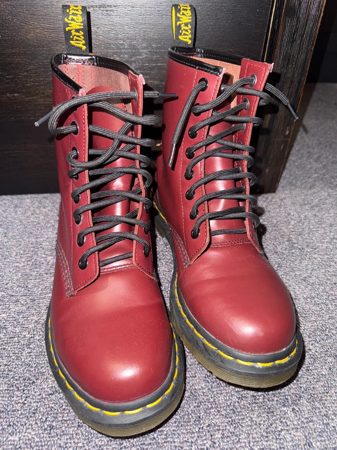 Selling a pair of Dr. Martens 1460 boots in cherry red! They're in great shape and ready for a new home. Classic style and perfect for adding some edge to your wardrobe. Used a couple times only!!