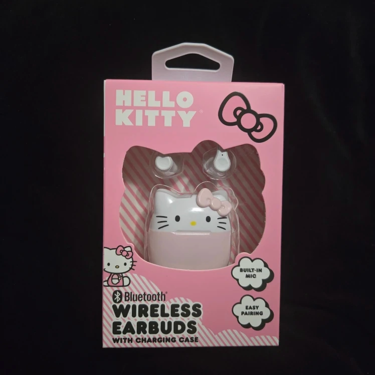 Selling a pair of Hello Kitty Bluetooth wireless earbuds! They come with a charging case, built-in mic, and easy pairing. How cute!