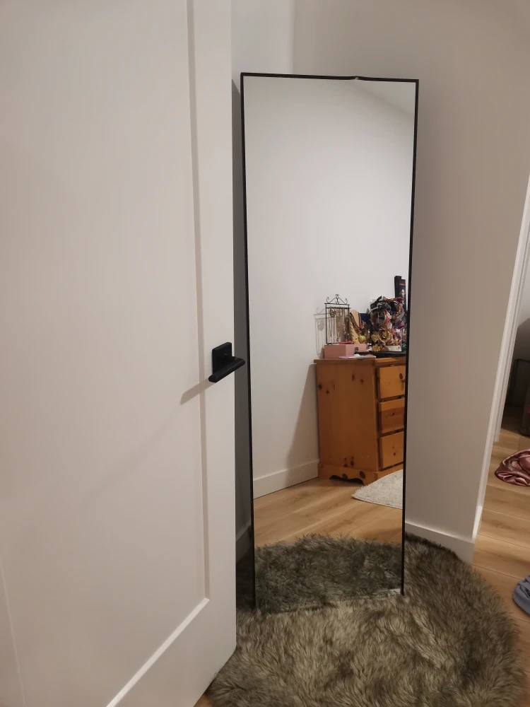 Selling a full length mirror with a sleek black frame. It's in great condition and ready to brighten up your space!