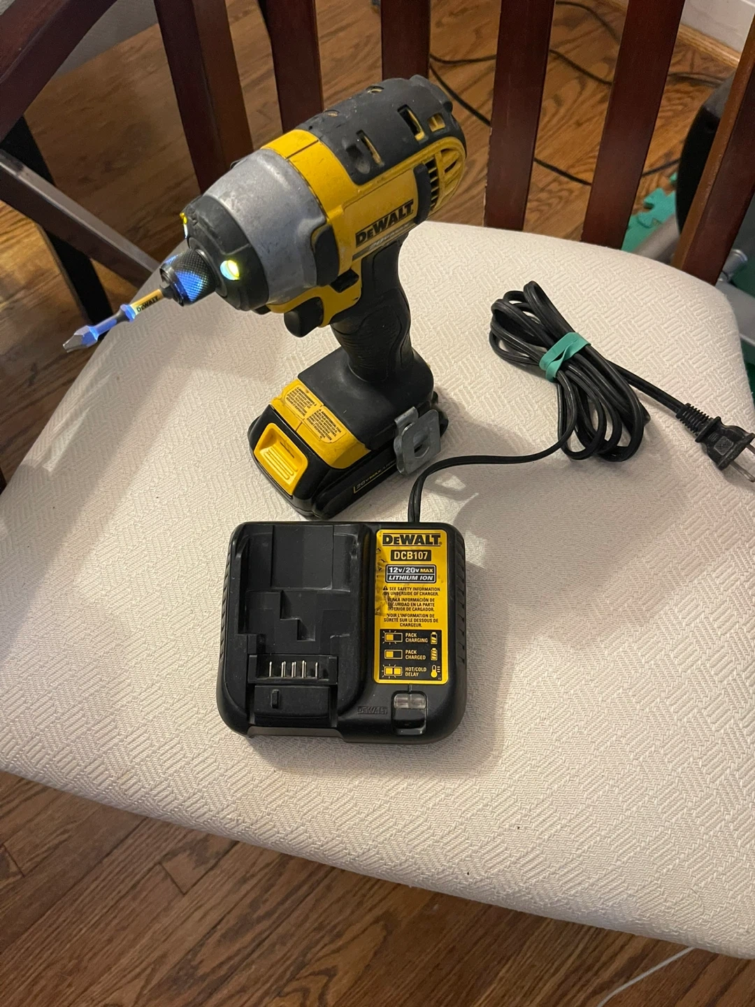 Selling set of 3 DeWalt DCB112 12V/20Max Lithium Ion battery charger and a DeWalt battery, always used at home for fixing items