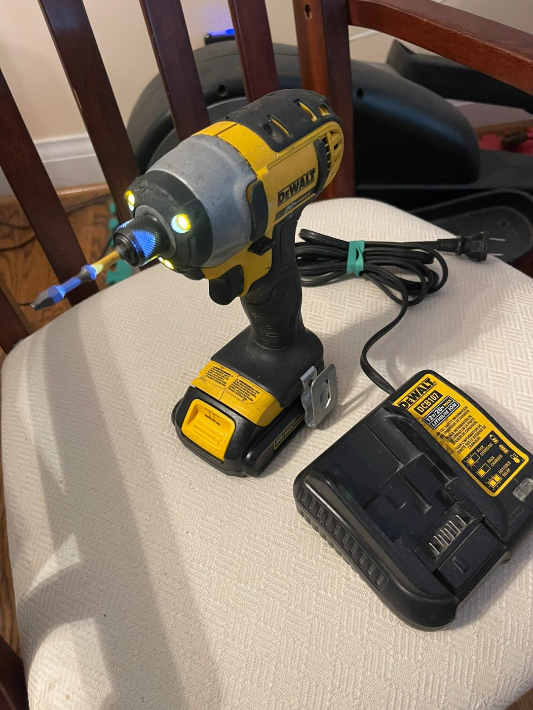 Selling set of 3 DeWalt DCB112 12V/20Max Lithium Ion battery charger and a DeWalt battery, always used at home for fixing items