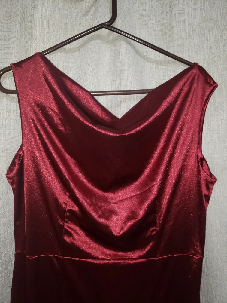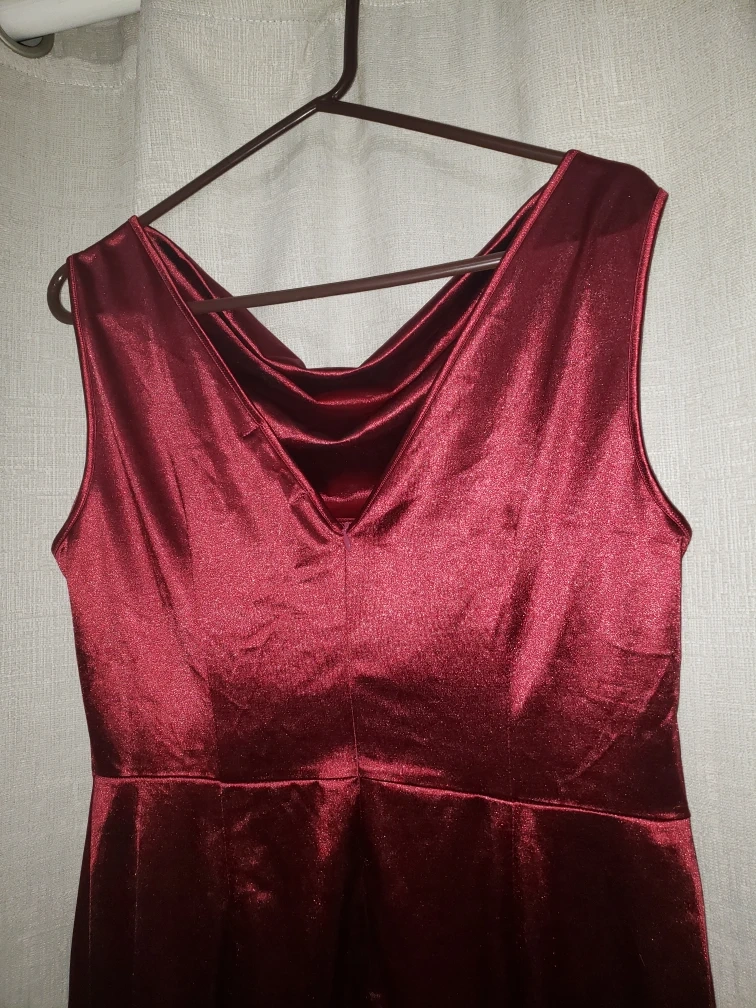 NEW burgundy gown,, medium weight stretch satin like material. Flared bottom.
