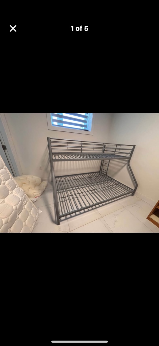 Selling a metal frame bunk bed in great condition! It's sturdy and ready for a new home. Perfect for kids' rooms or guest rooms. Top is twin size / bottom is double size