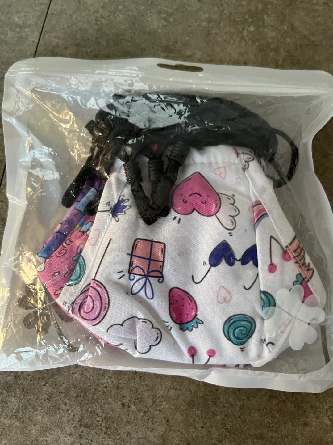 I'm selling 12 pieces of washable kids face masks with fashion designer prints. They are new and still in their original packaging. Perfect for daily wear, these masks are designed for comfort.