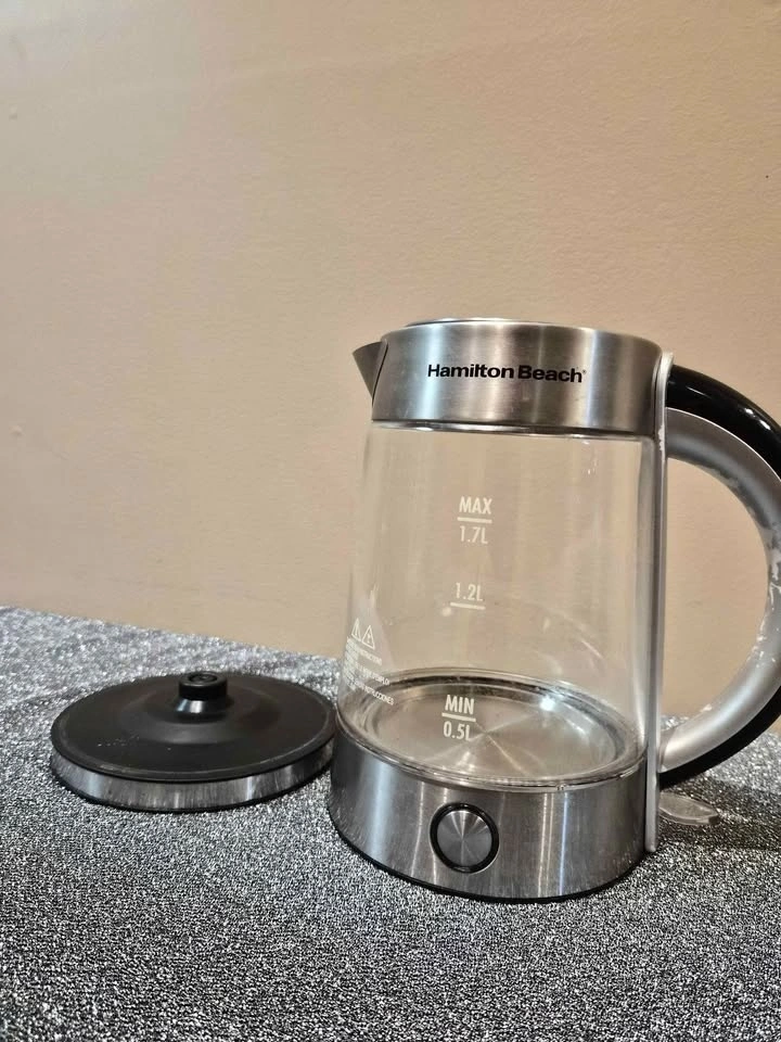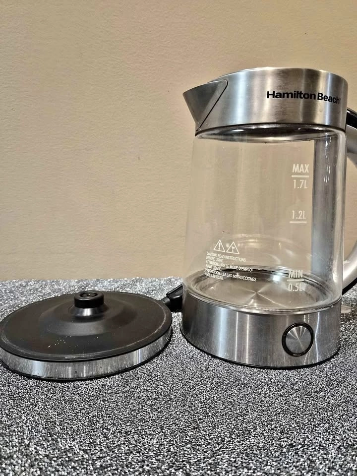 The lid does not open automatically when the button is pressed. That's why the price, everything else works very well and is super fast.