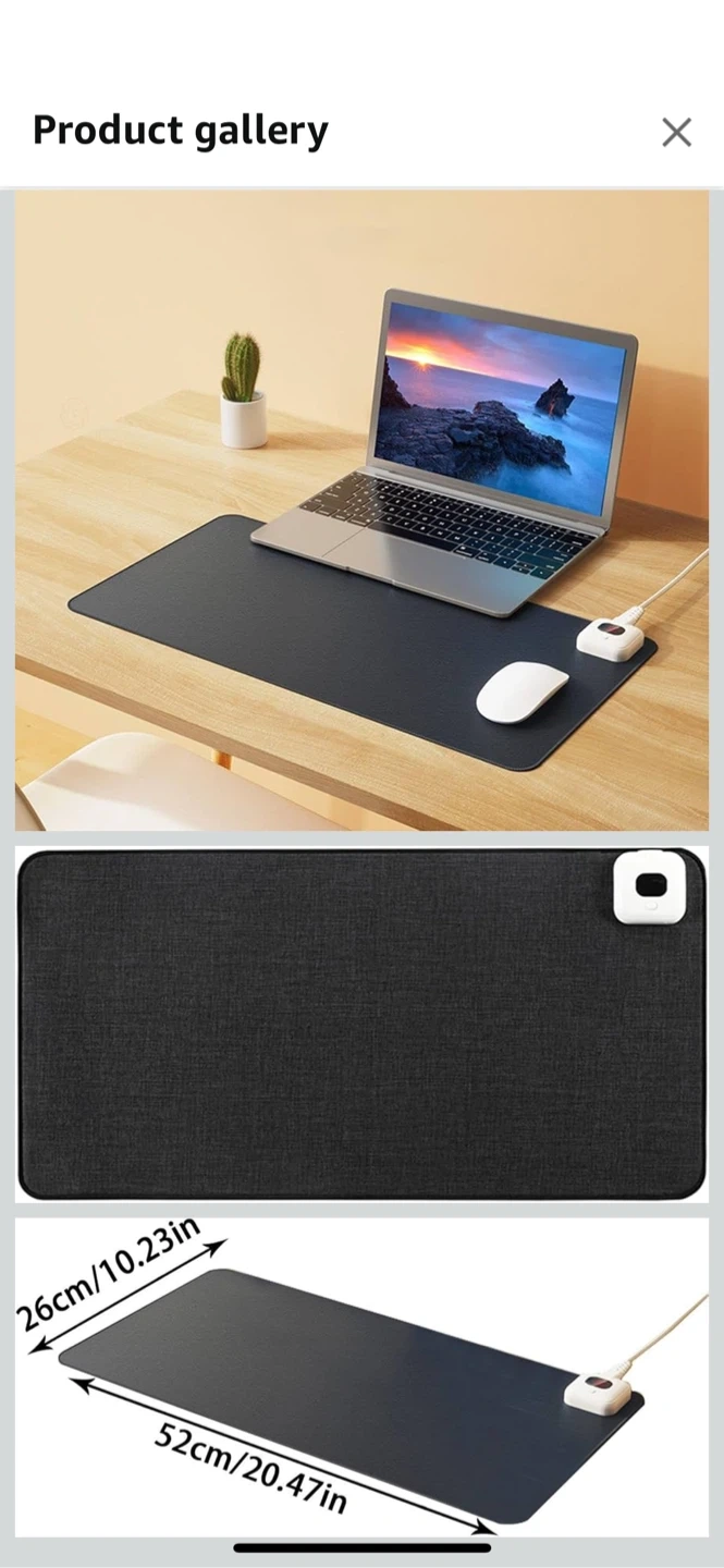 This heated desk pad is perfect for keeping your hands warm while you work! It's made of PU leather and features 3-hour auto shut-off for safety. It measures 26cm x 52cm.